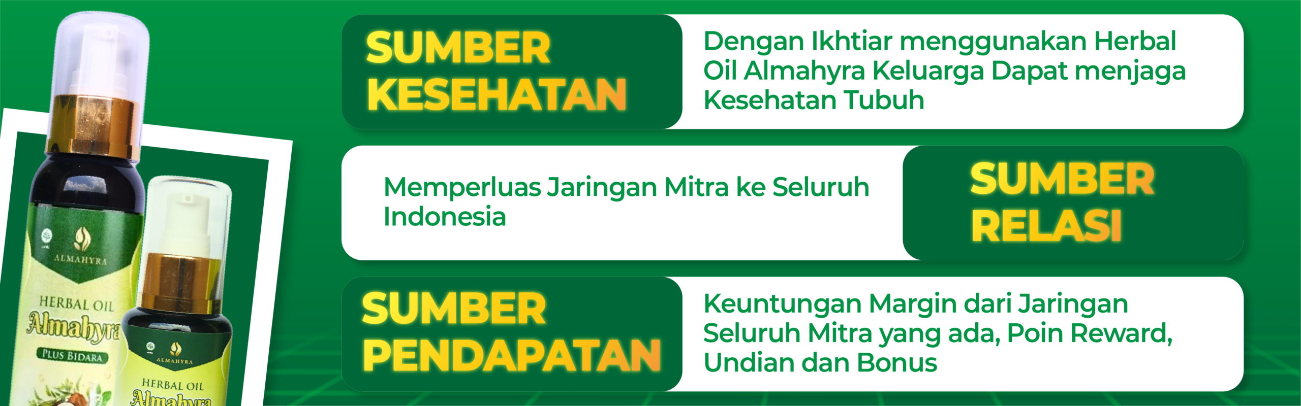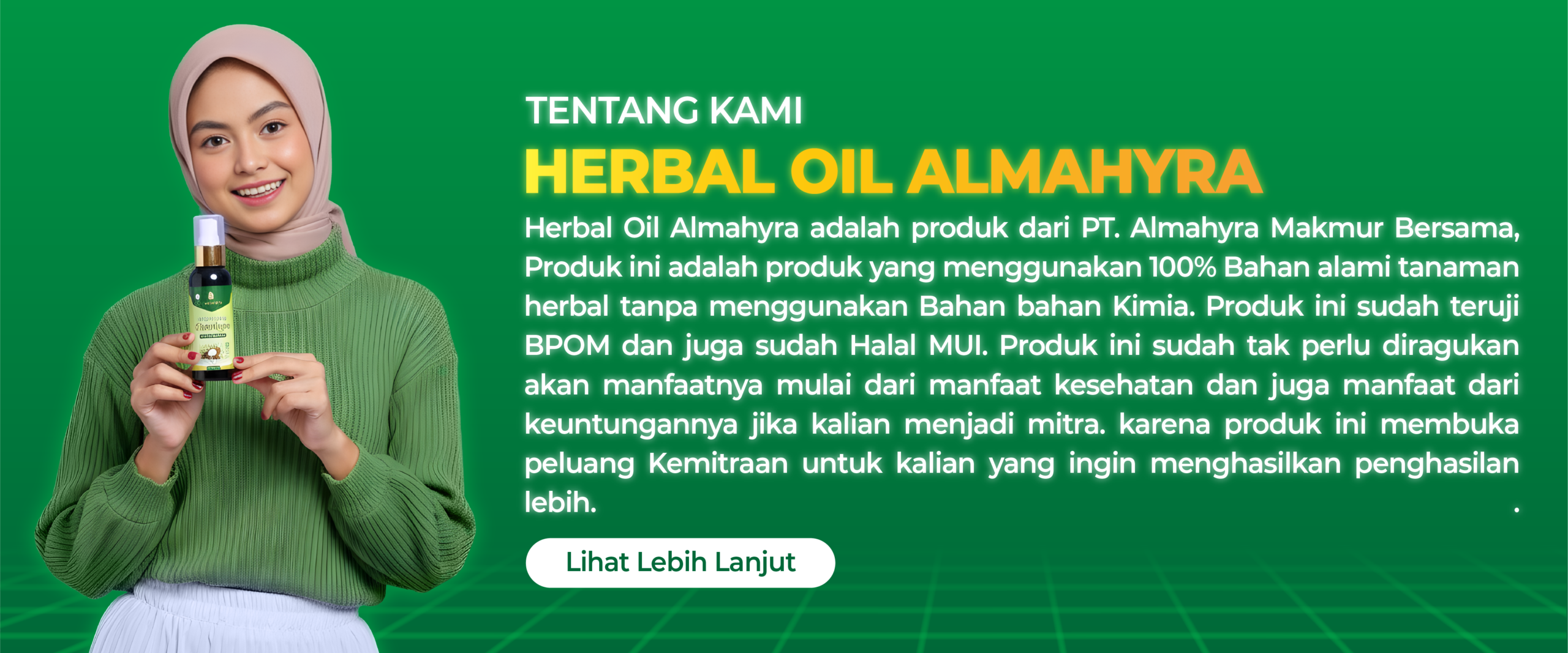 Salah satunya adalah Herbal Oil Almahyra yang memiliki banyak manfaat dan khasiat yang luar biasa. kami adalah perusahaan yang berbasis Grosir dan berfocus untuk membantu penjualan mitra kami dengan support full terhadap mitra Almahyra. Saat ini sudah mimiliki ribuan Mitra dan Produk kami sudah tersebar sebanyak ratusan ribu produk Herbal Oil Almahyra